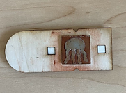 This was the outcome of the stamping machine. Due the unequal distribution of force, the top of the jellyfish did not come through. All in all, I am really satisfied with this result and with a readjustment of the stamp arm this could be fixed!